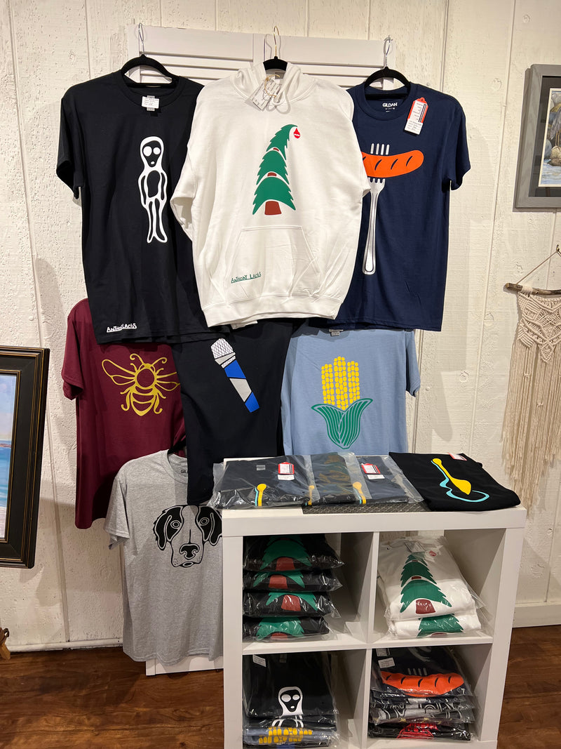 It began when I would get off work and drive an hour to the Old Town School of Folk Music in Chicago. I already knew how to play the guitar; I wanted to get to know fellow musicians. Having recorded myself for years with a small digital recording setup I ordered from a magazine, I began recording others. I began an independent record label, Gray Wolf Records, to release their music. Part of being a solo operation is I assumed all roles of the production process. The album art led to creating concert posters for music showcases I would produce, the concert posters led to making t-shirts. I like the humanity of hand drawn images, no matter how much you try to make symmetry there is always asymmetry, just as in nature. The warmth of the analog creation, similar to the warmth of a vinyl record. You are joining me on this journey where at this time I am enjoying making unique designs, to be worn and enjoyed with the wearer sharing the experience others have when seeing the shirt.